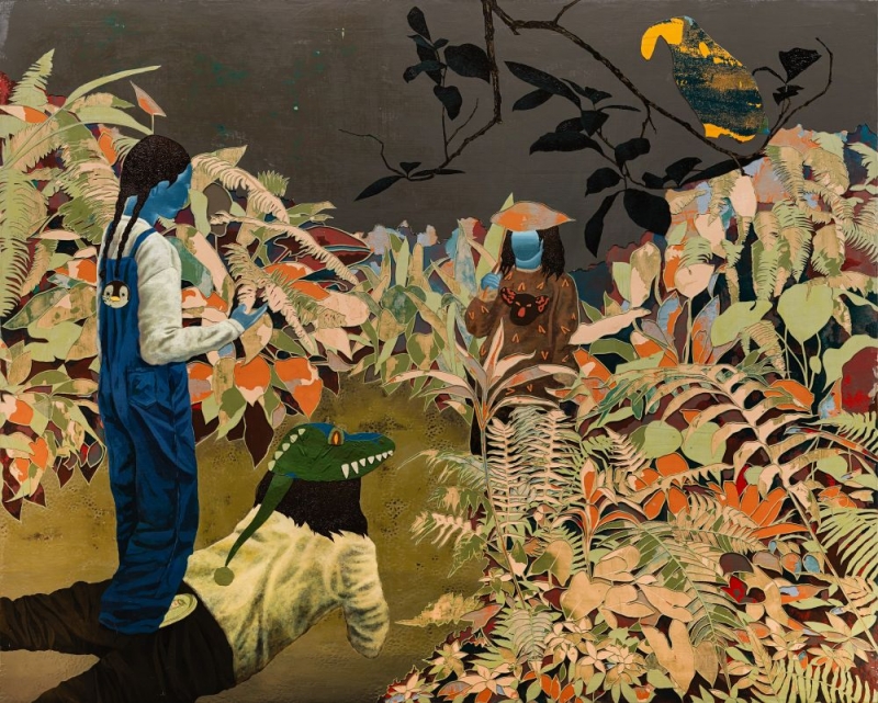 葉誌航 跟著鱷魚導遊逛植物園壓克力 畫布 130x162 cm 2025 -
